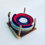 紙の丸紐2本どりを巻き込み、丸コースターを編みました。