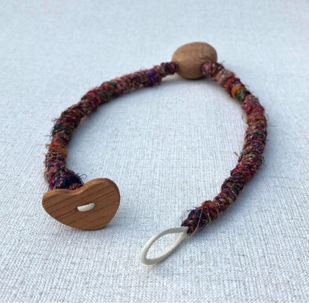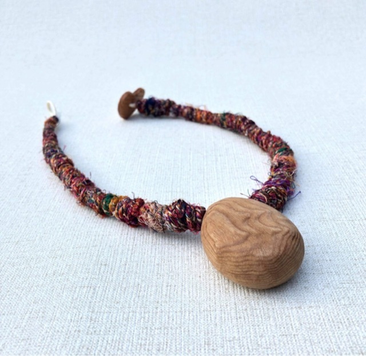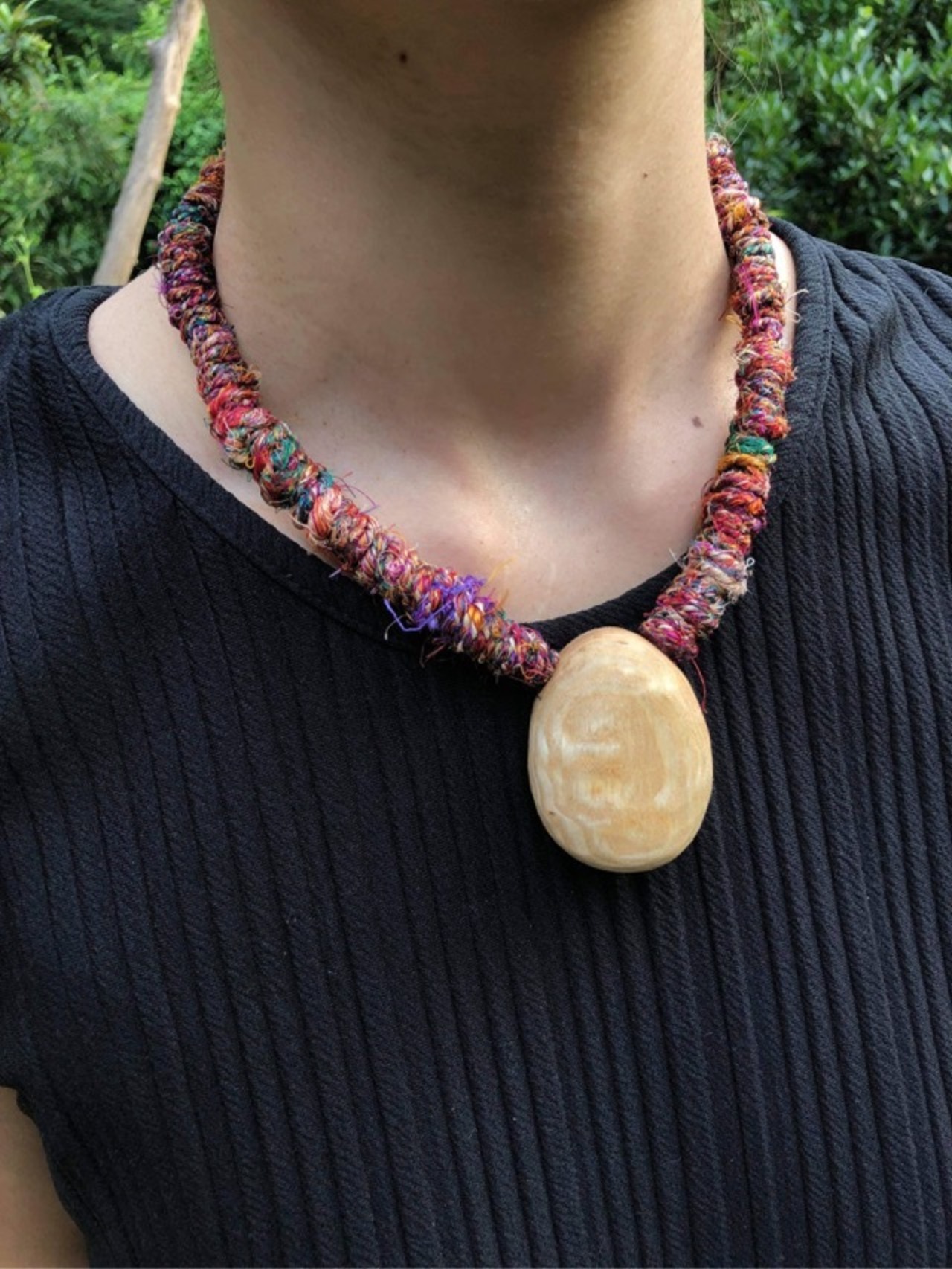 カラフルなリサイクルシルクの質感を胸もとで楽しんでください。