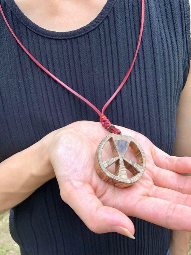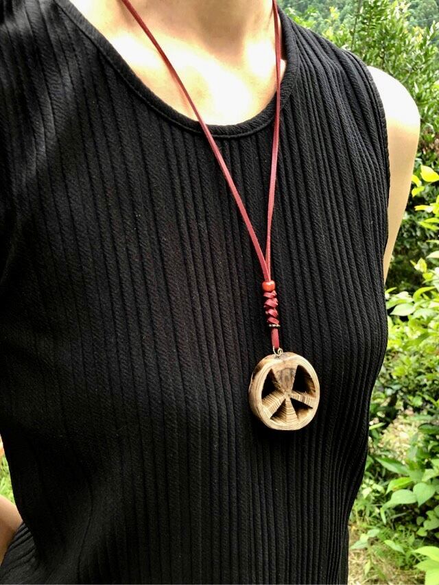 ピースマークを胸に揺らしたら、秩父の森から世界の平和がやってくるような気がします。