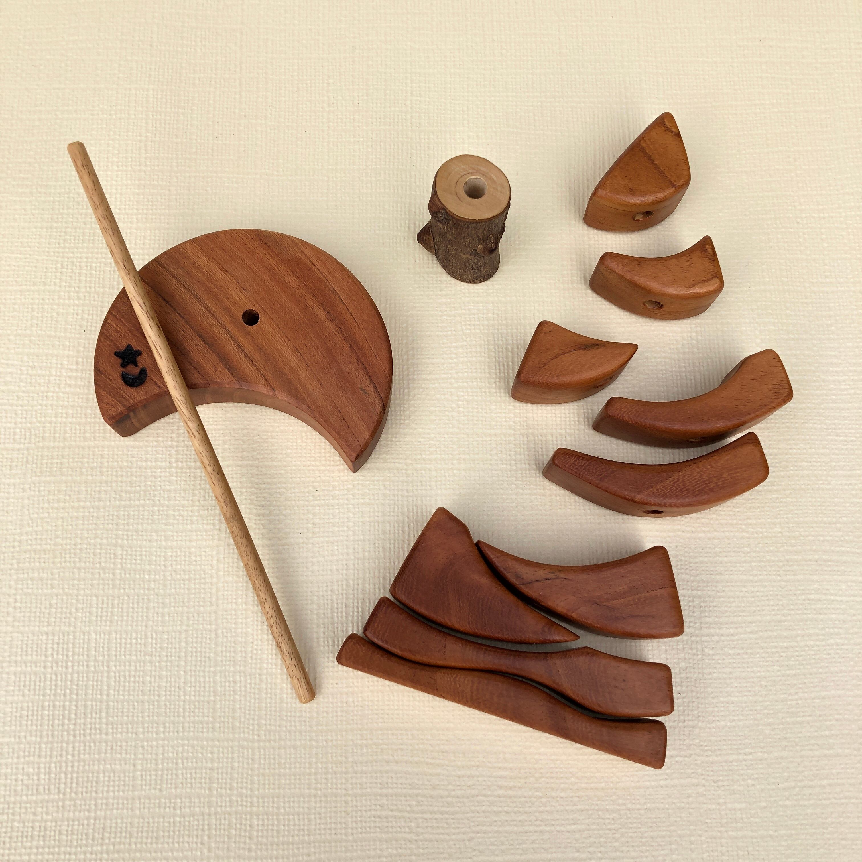 少しずつ形の違うピースを組み立てて、美しい針葉樹を完成させてください。